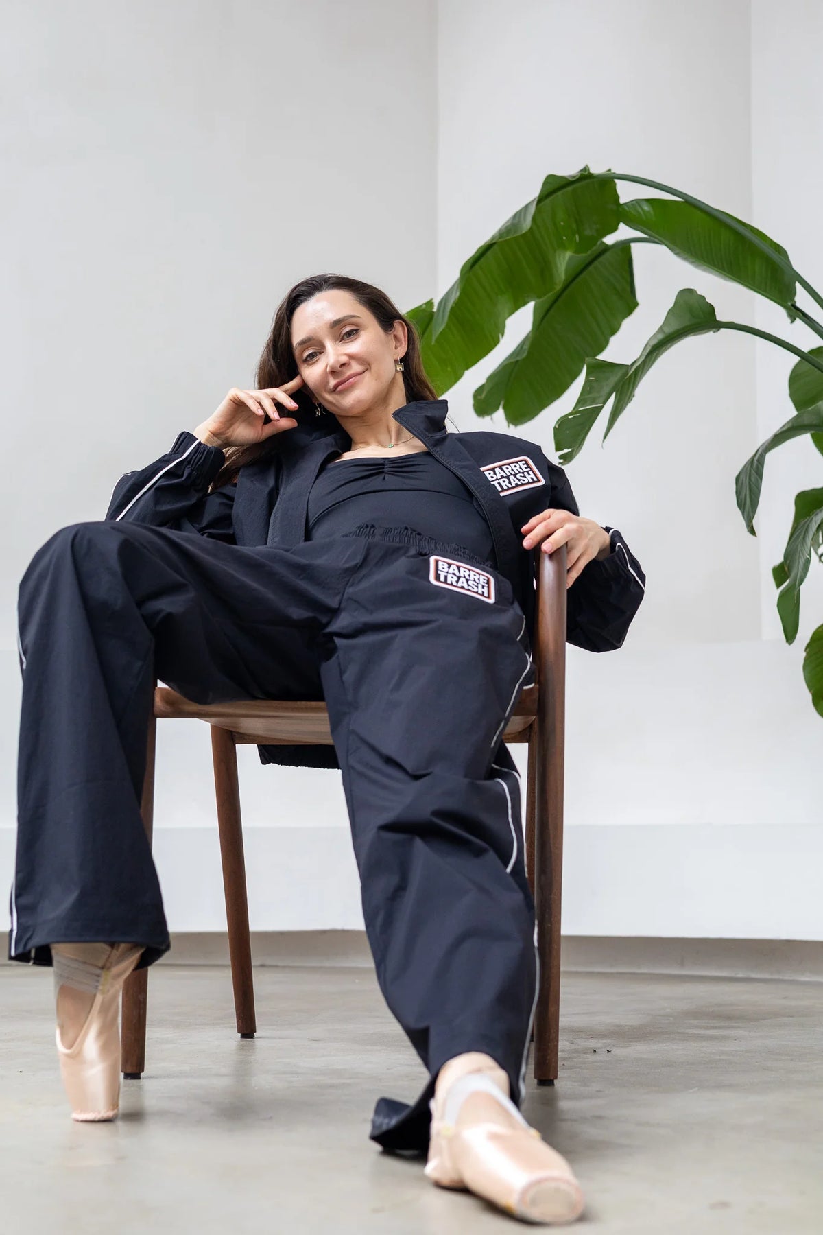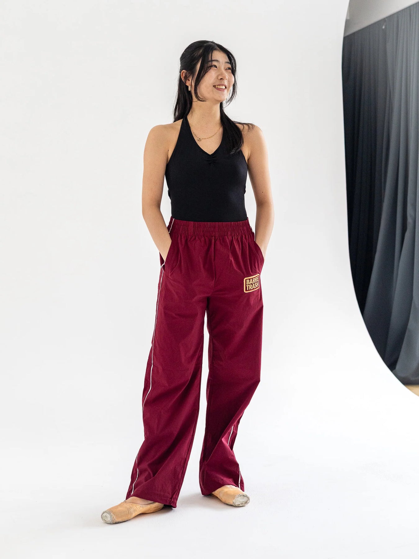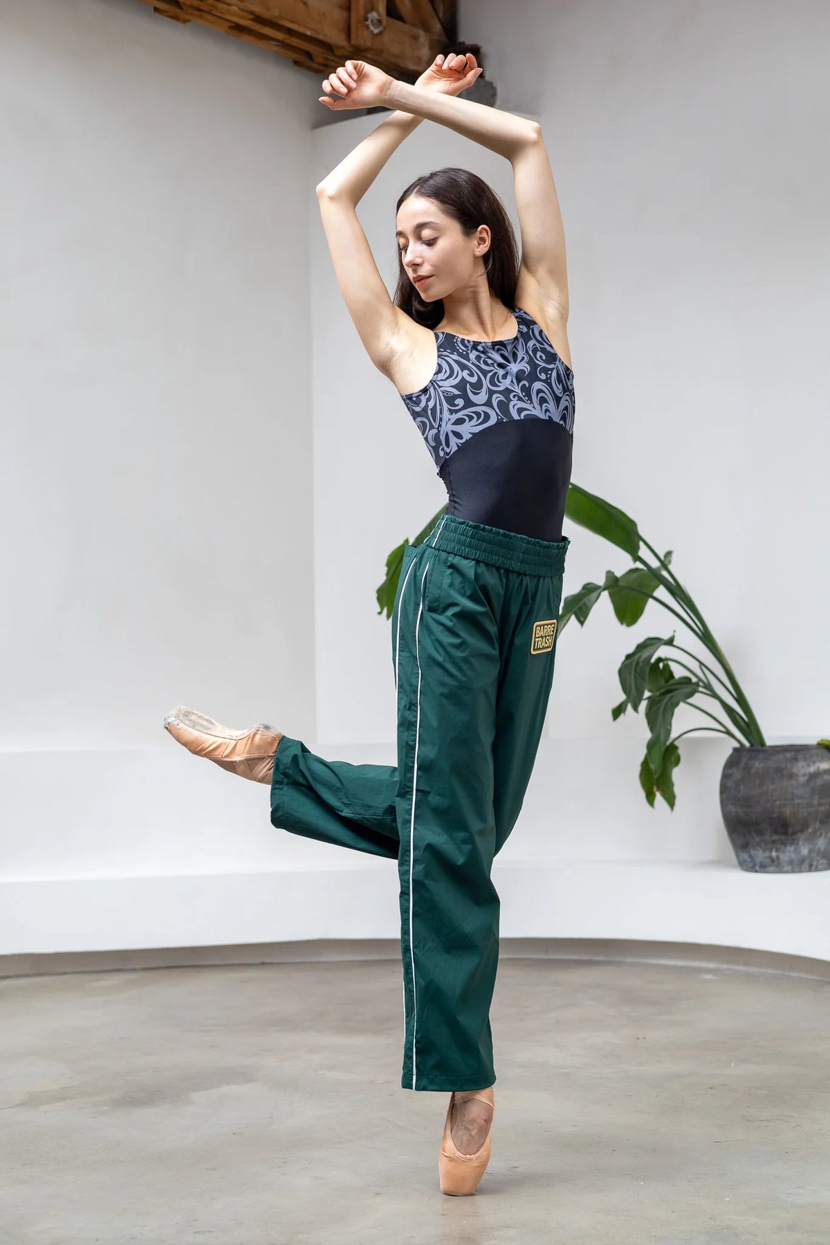 These brand new track pants are cut long: designed for grand plié.
